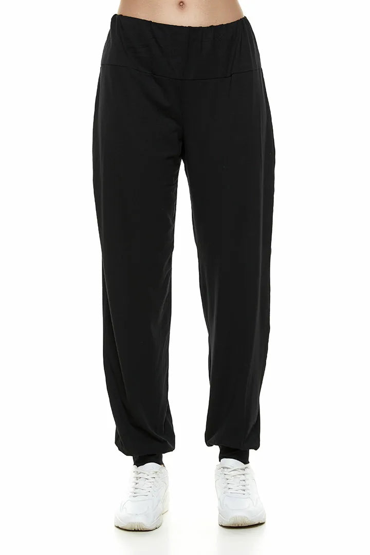 Παντελόνα με μπάσκα και μανσέτα μονόχρωμη, γυναικεία από 95% βισκόζυ και 5% λύκρα